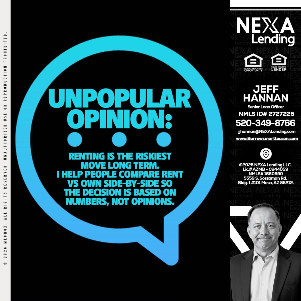 Hi, my name is Jeff Hannan. I’m a Loan Officer with NEXA Lending LLC., offering personalized mortgage solutions, fast customized quotes, great rates and service with integrity.